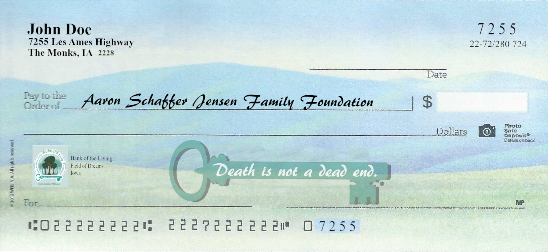 The Aaron Schaffer Jensen Family Foundation is Iowa nonprofit number 645890, organized as a 501 (c) (3). This means two things: your donation is tax deductible and our 1023 filing, which shows our immediate as well as long-term goals, is easily accessible. In other words, HOW we will spend your money is in the public domain.